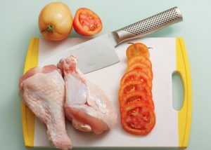 - Usar equipos y utensilios (cuchillas, tablas de cortar, etc.) diferentes para las carnes crudas, las frutas y verduras, y los alimentos cocidos. Entre un uso y el siguiente, lavar y desinfectar todos los utensilios.